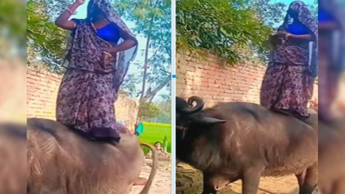 घरवीडियो बजा पवन सिंह का गाना राजा रंगबाज, सुनते ही भैंस पर चढ़ गई महिला, घूंघट में किया ऐसा डांस!…