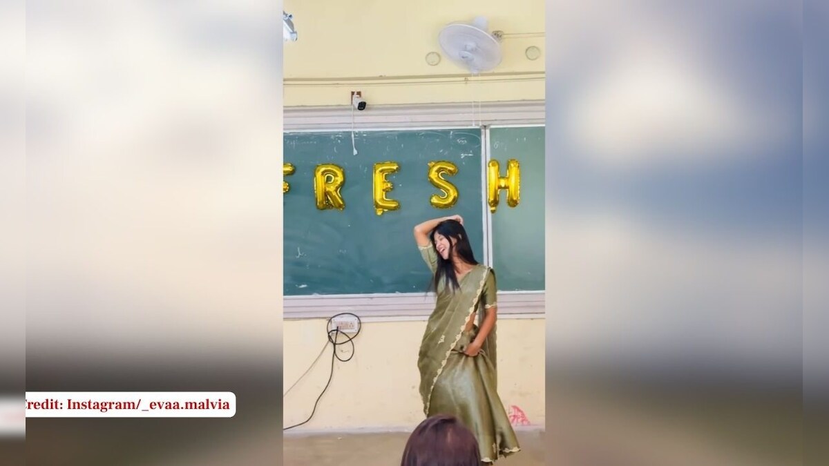 घरवीडियो फ्रेशर्स पार्टी में छात्रा ने साड़ी पहनकर किया जोरदार डांस, चिकनी चमेली गाने पर किया डांस, उड़ाए सबके होश!…