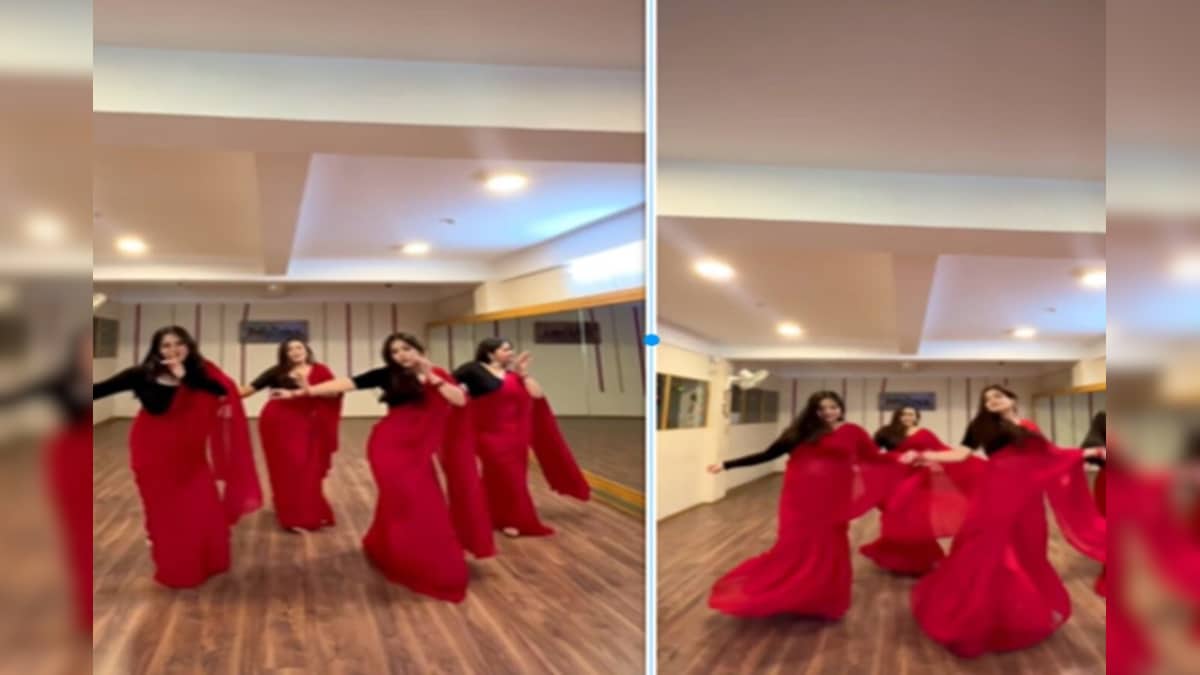 घरवीडियो लाल शिफॉन साड़ी में दोस्तों ने किया डांस, गले लग जा पर दिखाए मूव्स, नजरें नहीं हटा पाए लड़के…